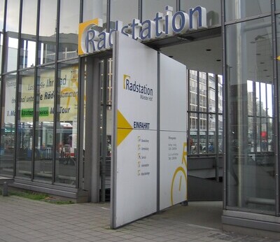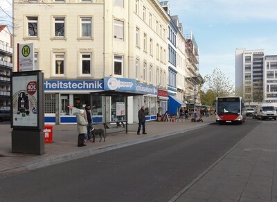 Description: Die Förderung des Umweltverbundes ist ein wesentlicher Maßnahmenkomplex zur langfristigen und nachhaltigen Reduzierung der Lärmimmissionen durch die Vermeidung von KFZ-Fahrten. Neben der Schaffung durchgehender, attraktiver und sicherer Radverkehrsanlagen sowie der Sicherstellung der Freizügigkeit, Barrierefreiheit und Querungssicherheit für den Fußverkehr hat die Förderung des Öffentlichen Verkehrs einen hohen Stellenwert. Im Einzelnen sind folgende Maßnahmenansätze erfolgversprechend: Nachfolgend werden diese Ansätze näher beschrieben. Die Förderung des Radverkehrs und die damit angestrebte Verlagerung von KFZ-Fahrten zum Radverkehr sind maßgeblich von der Existenz nutzerfreundlicher Radverkehrsanlagen abhängig. Neben ausreichenden baulichen Gegebenheiten und den Sicherheitsanforderungen entsprechender Markierung und Beschilderung ist es auch wichtig, ein fahrradfreundliches Klima zu schaffen. Hierzu kann die kostenlose Mitnahme von Fahrrädern in Fahrzeugen des öffentlichen Verkehrs (ÖV) und Öffentlichkeitsarbeit beitragen. Aber auch die Bereitstellung von ausreichenden Fahrradabstellanlagen an Bahn- und Bushaltestellen oder in den Einkaufsbereichen können zu einer verstärkten Fahrradnutzung beitragen und so den motorisierten Individualverkehr einschließlich der damit verbundenen negativen Umweltauswirkungen reduzieren. Ein gutes Beispiel dafür sind Fahrradparkhäuser, die wettergeschützte und überdachte Abstellplätze bieten und an die oftmals ein Reparaturservice und ein Fahrradverleih angegliedert ist. Rastation in Münster Eine weitere Möglichkeit, den Radverkehr gezielt zu fördern ist die Ausweisung von Fahrradstraßen. Dies bietet sich auf Strecken an, die stark vom Fahrradverkehr genutzt werden. Auf diesen Straßen hat der Radverkehr Vorrang und anderer Fahrzeugverkehr dar. Eine weitere Möglichkeit den Radverkehr gezielt zu fördern ist die Ausweisung von Fahrradstraßen. Dies bietet sich auf Strecken an, die stark vom Fahrradverkehr genutzt werden. Auf diesen Straßen hat der Radverkehr Vorrang und anderer Fahrzeugverkehr darf nur nach entsprechender Beschilderung (Anlieger) ausnahmsweise diese Straßen mitbenutzen. Ein Beispiel hierfür ist die 2009 ausgewiesene „Wellnessroute“ in Friedrichshafen. Ausweisung Fahrradstraße – Beispiel Schmidtstraße in Friedrichshafen Der Fußverkehr ist, ähnlich wie der Radverkehr, insbesondere an Hauptverkehrsstraßen auf sichere Wegeverbindungen und Querungen angewiesen. Daher kann er nachhaltig durch eine Verbesserung der bestehenden Fußverkehrsanlagen gefördert werden. Fußgängerquerungen können durch die Errichtung von Querungshilfen wie Mittelinseln und Lichtsignalanlagen und mit Hilfe von Umgestaltungsmaßnahmen im Straßenraum gesichert werden. Begleitende Geschwindigkeitsreduzierungen für den Kraftfahrzeugverkehr mindern die Geräuschemissionen und tragen zur Verkehrssicherheit bei. Qualitativ hochwertige Oberflächen und abgesenkte, aber noch wahrnehmbare Bordsteinkanten gewährleisten die Barrierefreiheit für behinderte und alte Menschen und führen zu einer Angebotsverbesserung. Des Weiteren sollte das Fußwegenetz besonders engmaschig sein und auch kurze direkte Wege ermöglichen, die mit Kraftfahrzeugen nicht befahrbar sind. Auch die Schulwegsicherung ist ein Element zur Förderung des Fußgänger- und Radverkehrs. Dazu gehören definierte Schulwegpläne mit empfohlenen Schulwegrouten und verkehrsregelnden sowie baulichen Maßnahmen zum Schutz der Kinder im Straßenraum. Es beinhaltet aber auch Maßnahmen der Verkehrserziehung und Verkehrsüberwachung. Somit lassen sich Bring- und Holdienste mit dem Pkw für Kurzstrecken vermeiden. Eine besondere Form der Straßenraumgestaltung stellt der sogenannte „Shared Space“ dar. Durch fehlende Verkehrszeichen, Signalanlagen und Fahrbahnmarkierungen wird ein Verkehrsraum geschaffen, in dem alle Verkehrsteilnehmer gleichberechtigt werden. Nur durch gegenseitiges Rücksichtnahme und das Rechts-vor-Links-Gebot wird eine Verkehrssituation erzeugt, in der sich alle Verkehrsteilnehmer untereinander durch Blickkontakt abstimmen müssen. Der nicht mehr vom KFZ-Verkehr dominierte Straßenraum wird so für Fußgänger und Radfahrer attraktiver. Mit dem ÖPNV sollten nicht nur die Wohngebiete an die Innenstadt angebunden werden, sondern auch alle größeren Einkaufs- und Freizeiteinrichtungen sowie Gewerbezentren in Stadtrandlage. Damit besteht die Möglichkeit, die auf die Ortsrandbereiche ausgerichteten KFZ-Fahrten auf den öffentlichen Verkehr zu verlagern. Ein attraktives ÖPNV-Angebot basiert unter anderem auf kurzen Fahrzeiten mit wenigen verkehrsbedingten Halten. Hierfür können separate Busfahrstreifen angelegt werden, von deren Benutzung der motorisierte Individualverkehr ausgenommen ist. An den Ampelkreuzungen kann eine ÖPNV-Beeinflussung integriert werden, so dass die Grünphasen gedehnt bzw. beschleunigt geschaltet werden, sobald sich ein ÖPNV-Fahrzeug nähert. Hierbei entsteht jedoch ein Zielkonflikt mit der Verstetigung des KFZ-Verkehrsflusses durch eine „Grüne Welle“. Diesbezüglich wird eine Einzelfallabwägung notwendig. Behindertengerechte Haltestelle in Hamburg-Altona Die Vorrangstellung des ÖPNV kann außerdem mit gestalterischen Mitteln wie attraktiven Umsteigepunkten unterstrichen werden. Anzeigen der ÖPNV-Abfahrtzeiten in der Innenstadt bieten sowohl dem ÖPNV-Nutzer und ÖPNV-Betreiber, als auch den Gewerbetreibenden bzw. dem Einzelhandel Vorteile. Im Stadtbild präsente Informationen eines attraktiven ÖPNV-Angebotes können dazu beitragen Vorurteile von Autofahrern gegenüber öffentlichen Verkehrsmitteln zu überwinden. Fahrgäste können den Zugang zum öffentlichen Verkehr besser planen und verbringen die gegebenenfalls anfallende Wartezeit anstatt im Haltestellenbereich eher in den Einzelhandelseinrichtungen, Cafés und Restaurants. Die Verknüpfung der Verkehrsmittel untereinander ist vor allem für zent