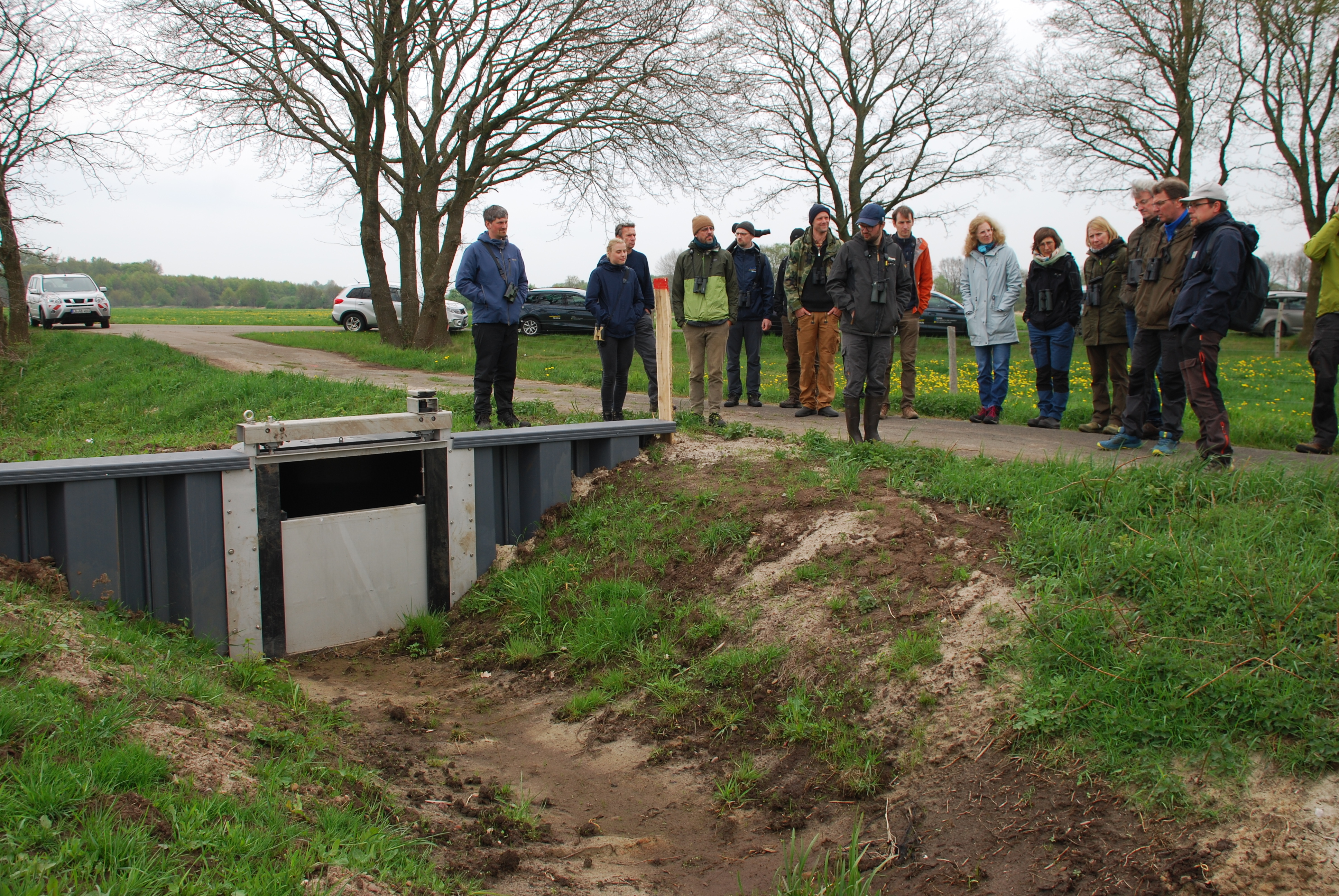 Die Mitarbeiter der Staatlichen Vogelschutzwarte und des BUND Diepholzer Moorniederung konnten sich davon überzeugten, dass die neuen Wehre deutlich dichter und leicht zu steuern sind.