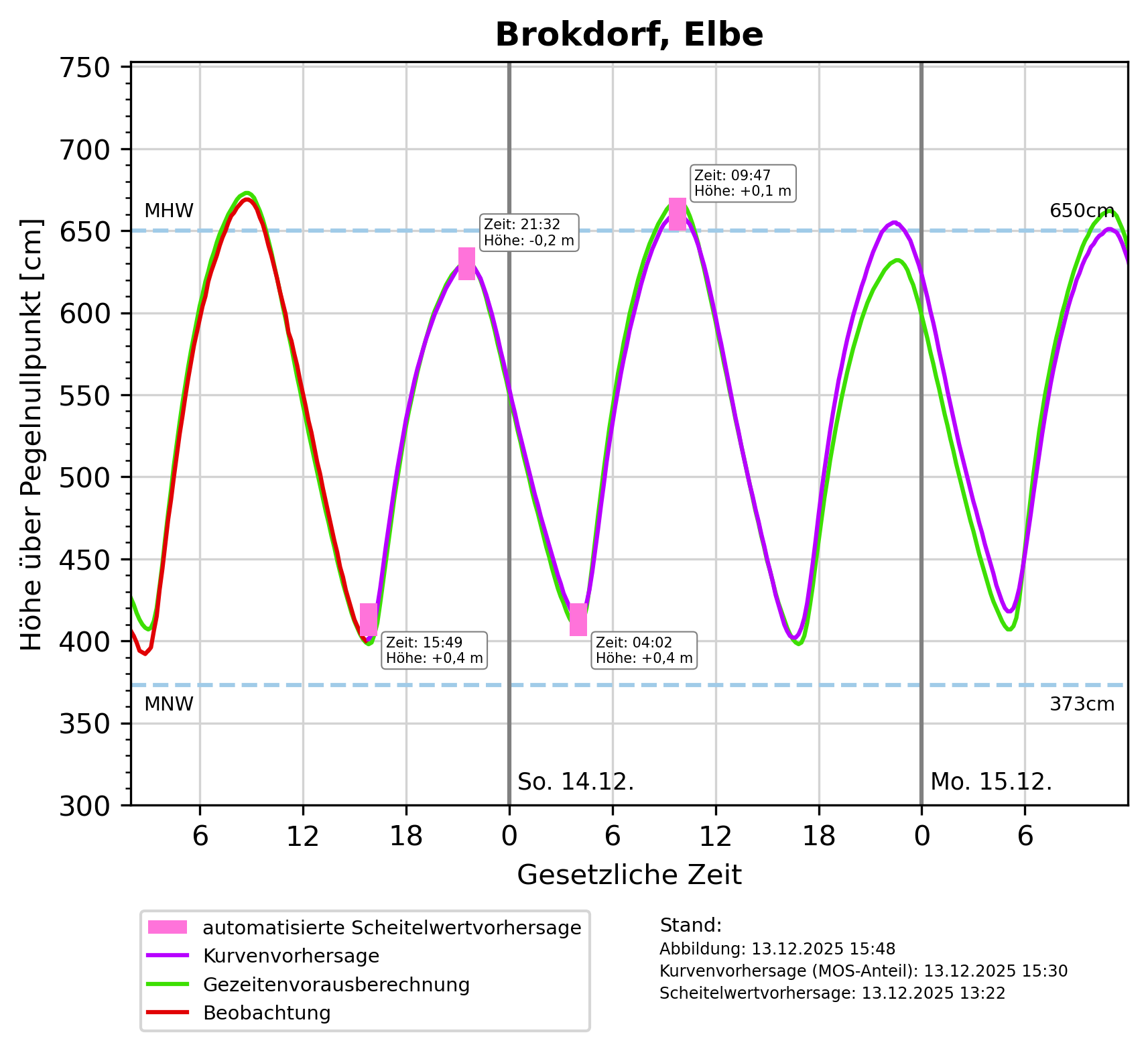https://www.pegelonline.wsv.de/gast/stammdaten?pegelnr=5970050 (Webseite) *Diagram für Vorhersagen für Tag_1-2: Höhe über pegelnullpunkt [cm]
